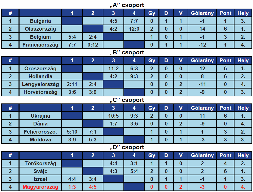 Holnap délután 14:00-tól lesz az Anglia – Magyarország női mérkőzés. Az angolok nagyon jók és gólerősek, a törököket sok góllal verték. Előzőekben az volt az elképzelésünk, hogy mi a törököket meg tudjuk verni, de az angolokat és a dánokat már nem feltétlenül, ám mégis majdnem sikerült elkapni a dánokat. A holnapi mérkőzés nagyon kérdőjeles. Drukkolunk a lányoknak. Ha veszítünk, akkor a 9-16. helyért folytathatjuk a versenyt a lányainkkal is. Várjuk a holnapot, lehet, hogy meglepetés lesz.